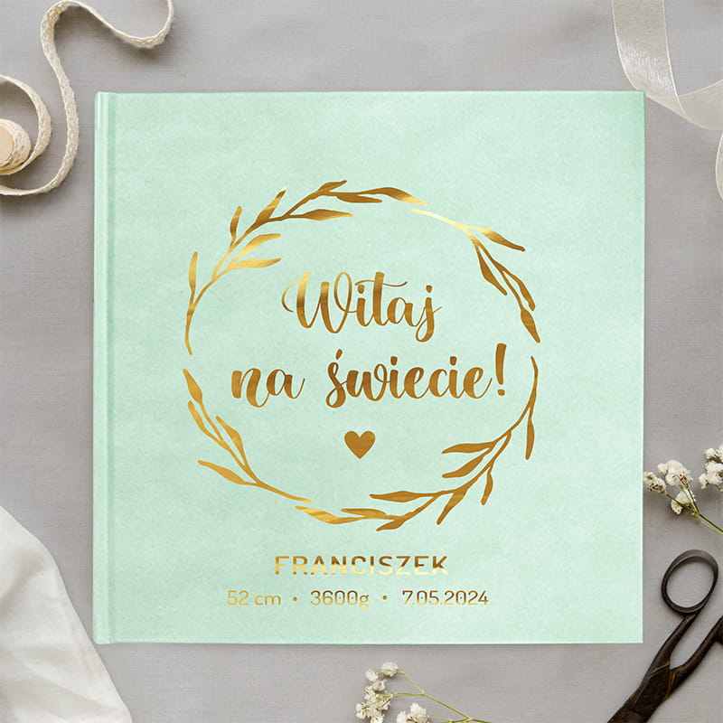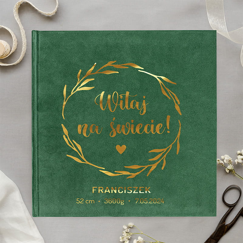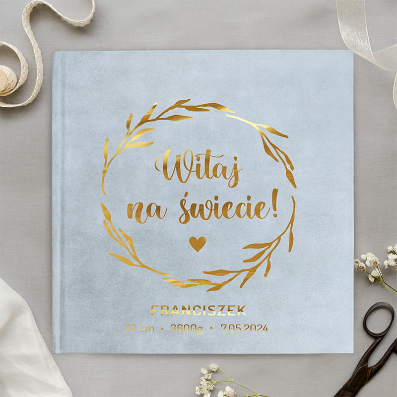 ALBUM welurowy ekskluzywny ze złotym napisem Prezent na narodziny