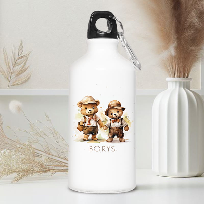 Personalizowany bidon do szkoły z grafiką z misiami i imieniem dziecka to praktyczny i uroczy prezent dla chłopca. Lekki, trwały i spersonalizowany – idealny na każdą okazję szkolną.