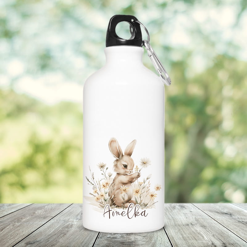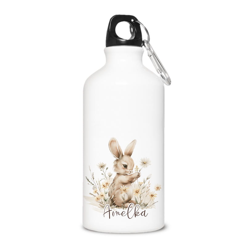 Personalizowany bidon z imieniem dziecka i uroczym króliczkiem. Idealny prezent dla córki – lekki, trwały i z karabińczykiem. Praktyczny i piękny dodatek do szkoły i przedszkola.