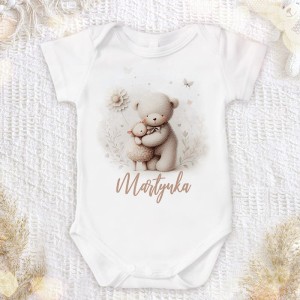Personalizowane body niemowlęce z uroczym nadrukiem misia i owieczki to idealny prezent na narodziny dziecka. Wygodne zapięcie i delikatna grafika tworzą praktyczną i wzruszającą pamiątkę. Dodaj imię maluszka i spraw wyjątkowy upominek, który zachwyci każdego rodzica.