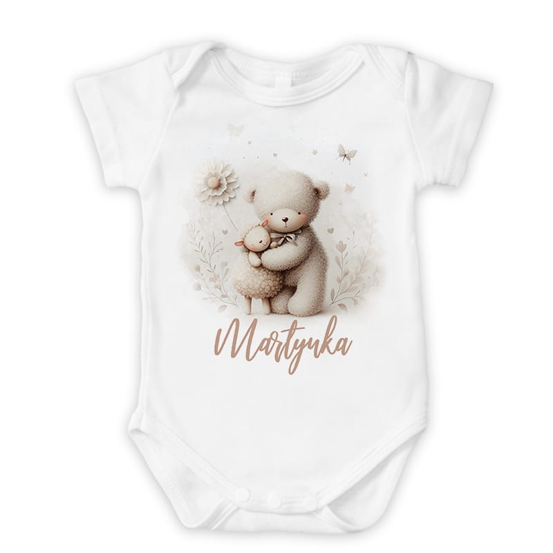 BODY niemowlęce z misiem i imieniem dziecka Miś i Owieczka