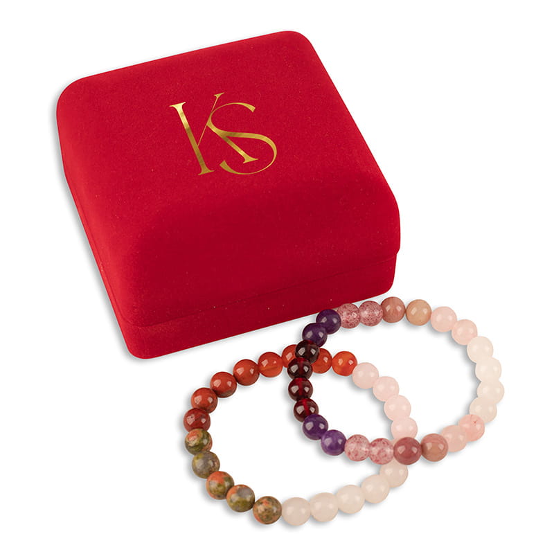 Bransoletka z naturalnych kamieni w aksamitnej szkatułce z inicjałami. Elegancki i osobisty prezent dla niej – na urodziny, rocznicę lub wyjątkowy gest.