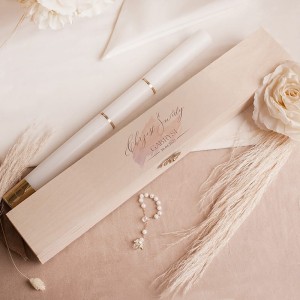 Pudełko na Gromnicę to wyjątkowy dodatek, który w piękny sposób uzupełni ceremonię Chrztu Świętego Twojego dziecka. To eleganckie pudełko zostało starannie wykonane z myślą o bezpiecznym przechowywaniu gromnicy - świecy symbolizującej światło Chrystusa wprowadzonego do życia malucha.