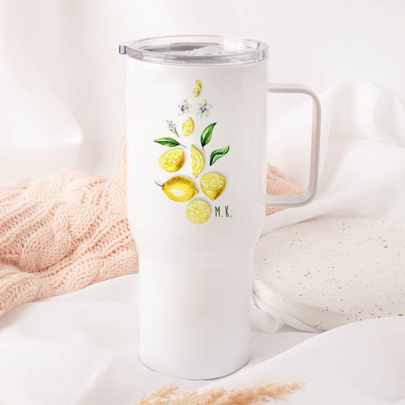 Personalizowany kubek termiczny z motywem cytryn to stylowy i praktyczny prezent, idealny na wieczór panieński.
