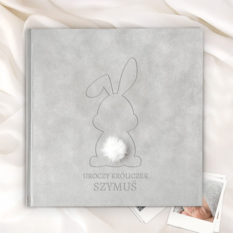 Miękka w dotyku oprawa przyciąga uwagę i zachęca do sięgania po wspomnienia. Na okładce znajduje się uroczy motyw królika z puchatym ogonkiem w formie pomponu, który dodaje ciepła i dziecięcego uroku. Całość uzupełnia personalizacja w postaci imienia dziecka, co sprawia, że prezent staje się niepowtarzalny. To nie tylko miejsce na zdjęcia, ale też przestrzeń na opowieści, zapiski i pamiątki z wyjątkowych momentów. Album idealnie sprawdzi się do przechowywania fotografii z pierwszych urodzin, świąt czy codziennych, wzruszających chwil.