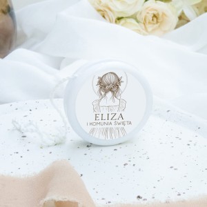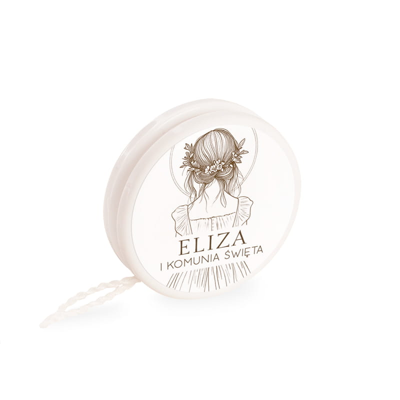 Personalizowane jojo na Pierwszą Komunię Świętą to niebanalny i uroczy upominek dla dzieci uczestniczących w komunijnym przyjęciu. Zabawka ozdobiona jest elegancką etykietą z grafiką dziewczynki, imieniem dziecka oraz datą uroczystości.