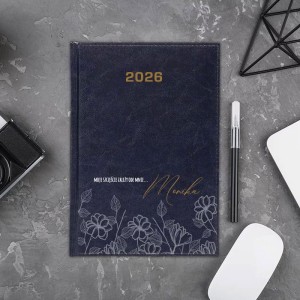 Jego ciemnogranatowa okładka z delikatnym, kwiatowym zdobieniem przyciąga wzrok subtelnym pięknem, a personalizowany napis sprawia, że staje się on osobistym przewodnikiem na każdy dzień roku.