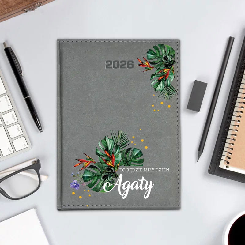 Personalizowany kalendarz 2026 „To będzie miły dzień (imię właścicielki)” to stylowy i motywujący planer w tropikalnej oprawie. Idealny prezent dla kobiety ceniącej organizację i pozytywne nastawienie. Praktyczny układ, trwała okładka i unikalny nadruk sprawiają, że każdy dzień zaczyna się z uśmiechem.