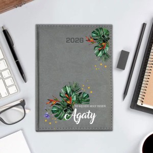 Personalizowany napis dodaje całości unikalnego charakteru, a motyw tropikalnych liści i kwiatów przyciąga uwagę swoją świeżością i energią. Personalizacja z imieniem sprawia, że jest to świetny pomysł na prezent dla siostry, przyjaciółki, koleżanki z pracy czy nawet samej siebie. Kalendarz z takim przesłaniem pozytywnie nastraja, a jednocześnie stanowi praktyczne narzędzie organizacji czasu.