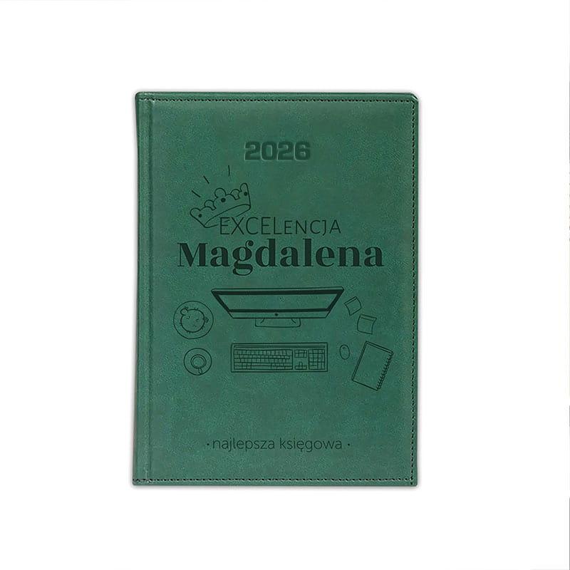 Personalizowany kalendarz książkowy 2026 dla księgowej to praktyczny i zabawny prezent. Idealny do planowania pracy, z estetyczną oprawą i humorystycznym napisem „EXCELencja”. Świetny pomysł na upominek z okazji świąt, urodzin lub Dnia Księgowego.
