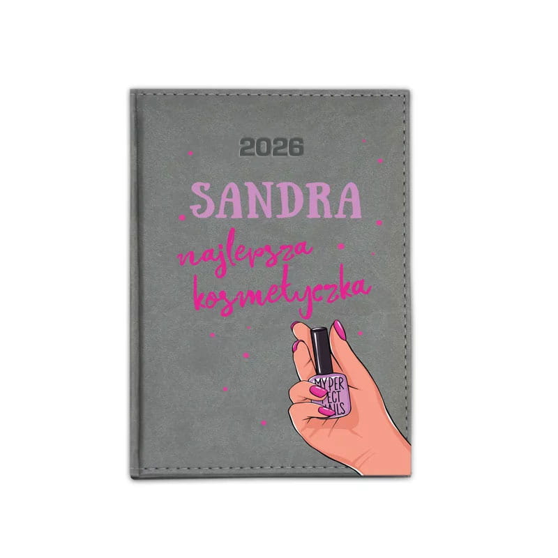 Personalizowany kalendarz książkowy 2026 dla manikiurzystki z grafiką „My Perfect Nails” to idealny terminarz dla każdej stylistki paznokci. Pomaga planować dzień z klasą i pasją. Praktyczny i stylowy, doskonale sprawdzi się jako prezent dla kosmetyczki pracującej w branży beauty.