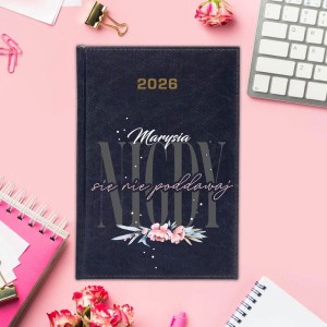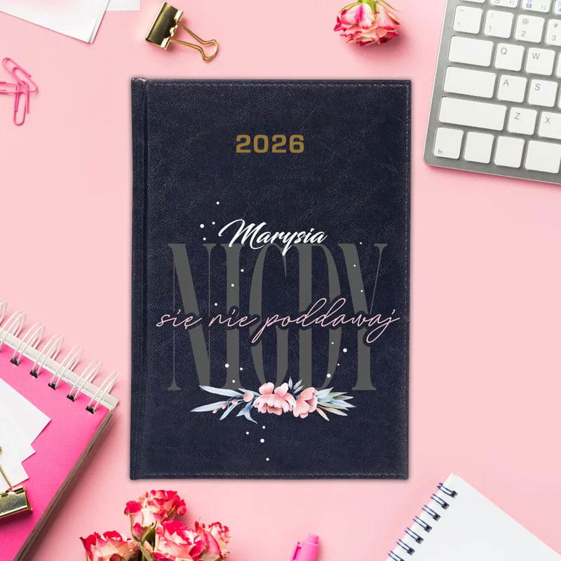Kalendarz osobisty 2026 z mottem „Nigdy się nie poddawaj” to idealny prezent dla kobiety, która potrzebuje motywacji. Personalizacja imieniem, elegancka oprawa i funkcjonalne wnętrze czynią go praktycznym i inspirującym dodatkiem na każdy dzień roku. Stworzony z myślą o silnych kobietach.