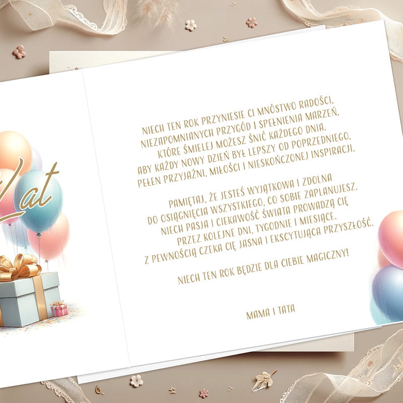 To doskonały wybór na prezent dla nastolatki z okazji jej urodzin, zarówno jako samodzielny, symboliczny upominek, jak i elegancki dodatek do większego prezentu. Możliwość personalizacji sprawia, że jest to produkt wyjątkowy i jedyny w swoim rodzaju. Kartka może też stać się ozdobnym elementem w pokoju, przypominającym o szczególnym dniu i osobie, która ją podarowała.