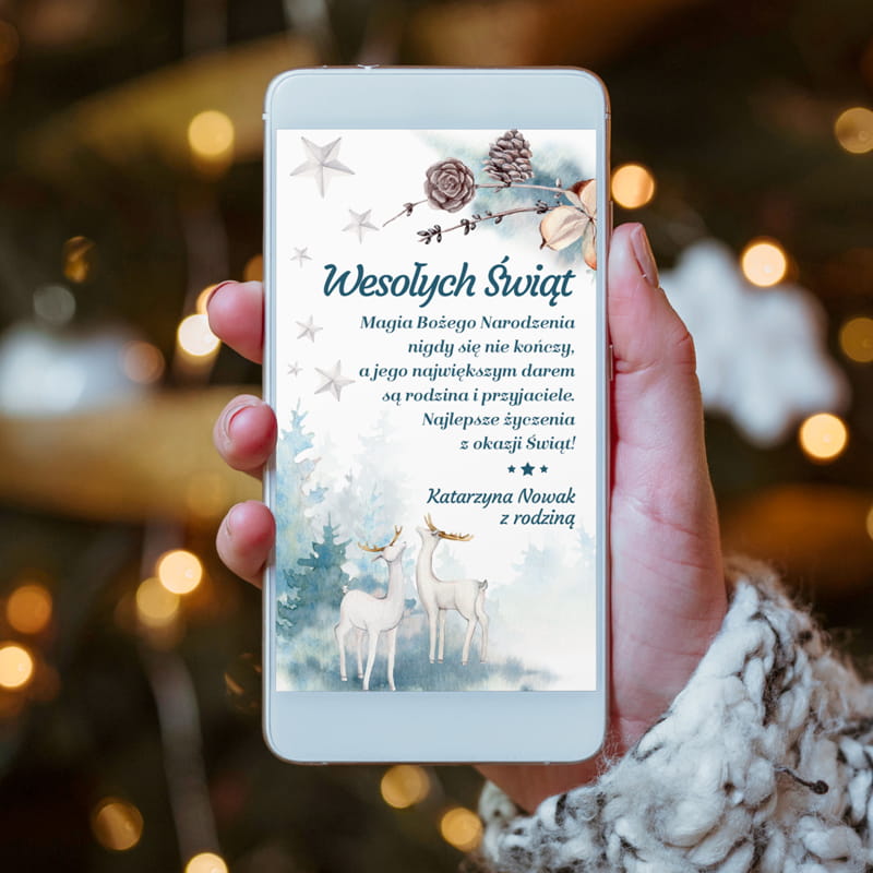 Personalizowana kartka cyfrowa to szybki, prosty i skuteczny sposób przesyłania świątecznych pozdrowień. Pozwala dotrzeć do bliskich w dowolnym miejscu na świecie w zaledwie kilka chwil, niezależnie od tego, czy dzieli Was ulica, czy tysiące kilometrów. To również ekologiczne rozwiązanie, które eliminuje potrzebę drukowania i wysyłki papierowych kartek.