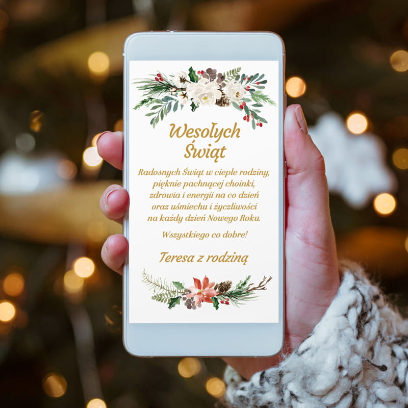 E-kartka bożonarodzeniowa ozdobiona świąteczną grafiką to nowoczesny sposób na przekazanie ciepłych życzeń. Na projekcie umieścimy wybrany przez Ciebie tekst oraz podpis, a jeśli chcesz wprowadzić zmiany – z przyjemnością dostosujemy treść do Twoich oczekiwań. Dzięki temu kartka nabierze osobistego charakteru i będzie w pełni odzwierciedlać Twoje intencje.