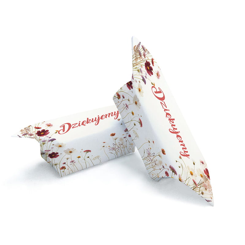 Krówki ciągutki z napisem „Dziękujemy” to wyjątkowy sposób na eleganckie i uniwersalne podziękowanie dla gości, który z powodzeniem sprawdzi się podczas wielu uroczystości. Delikatne, kwiatowe opakowanie z subtelną grafiką łąkowych kwiatów jest niezwykle uniwersalne i subtelne. Krówki pakowane są w opakowanie 1 kg, co przekłada się na około 85 sztuk. Dzięki swojej formie oraz ponadczasowemu smakowi mlecznej ciągutki stanowią one nie tylko pyszny, ale również niezwykle estetyczny upominek.
