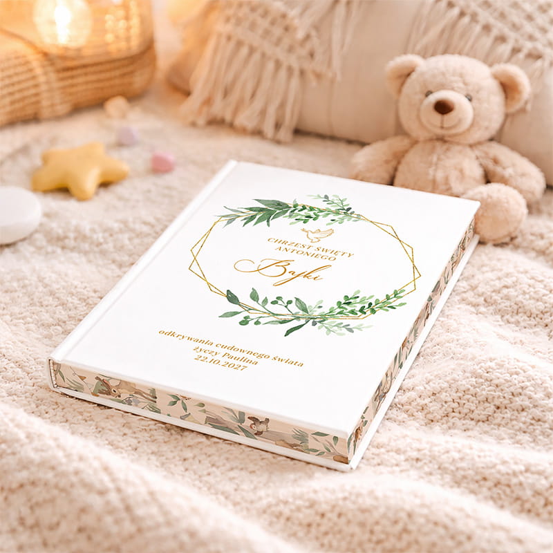 Twarda oprawa książki zapewnia trwałość a personalizacja sprawia, że książka staje się jedyna w swoim rodzaju – zawiera nie tylko imię dziecka, ale i indywidualną dedykację. Taki prezent zostaje na całe życie i przypomina o tym wyjątkowym dniu, jakim jest chrzest.