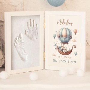 Narodziny dziecka to jedna z najpiękniejszych chwil w życiu rodziców, którą warto zachować w wyjątkowej formie. Elegancka ramka z metryczką z kolekcji, to prezent, który wzrusza i na długo pozostaje w sercach obdarowanych. To niezwykłe połączenie estetyki, personalizacji i symboliki. Ramka składa się z dwóch części. Po jednej stronie znajduje się miejsce na specjalną masę, w której można odcisnąć maleńką rączkę i stópkę dziecka, tworząc niepowtarzalną pamiątkę pierwszych dni życia.