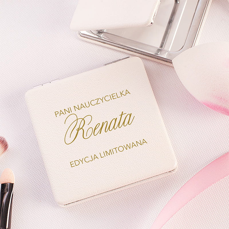 Eleganckie, kieszonkowe lusterko z personalizacją „Pani Nauczycielka – Edycja Limitowana” to stylowy i praktyczny prezent. Idealne na Dzień Nauczyciela, zakończenie roku lub jako wyjątkowe podziękowanie.