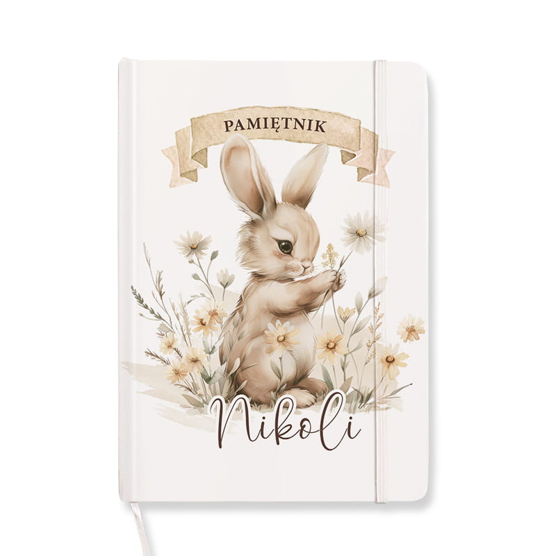 Personalizowany pamiętnik z imieniem dziecka i uroczym króliczkiem to wyjątkowy prezent dla dziewczynki. Twarda okładka, piękna grafika i miejsce na dziecięce sekrety – idealny do szkoły lub na prezent.