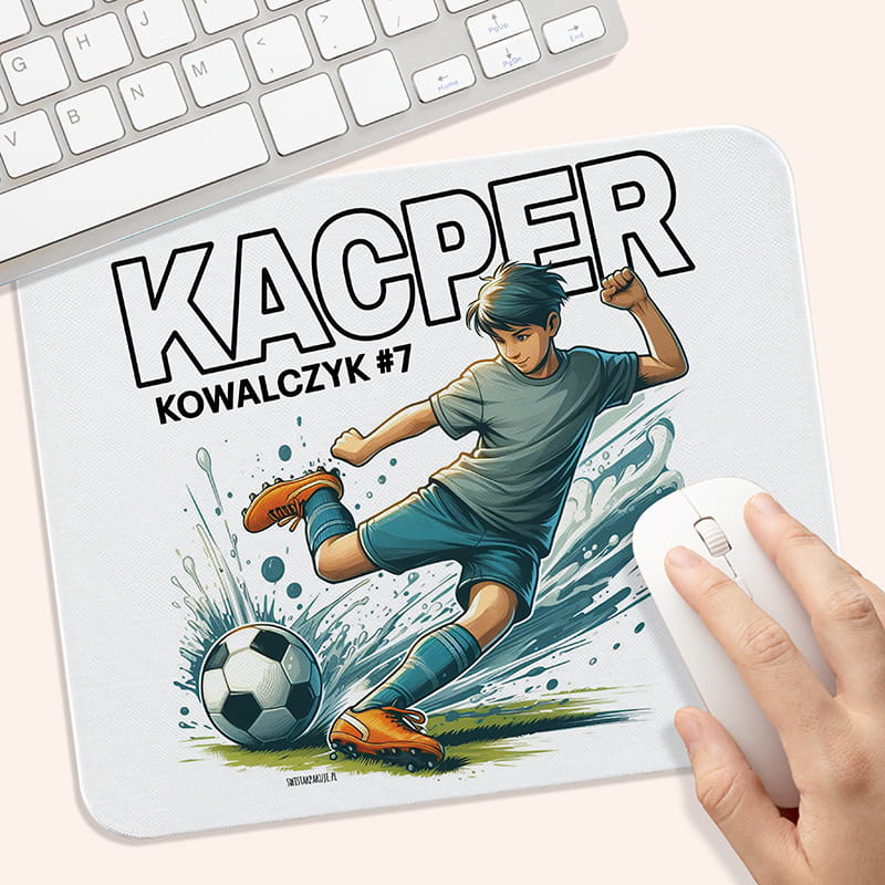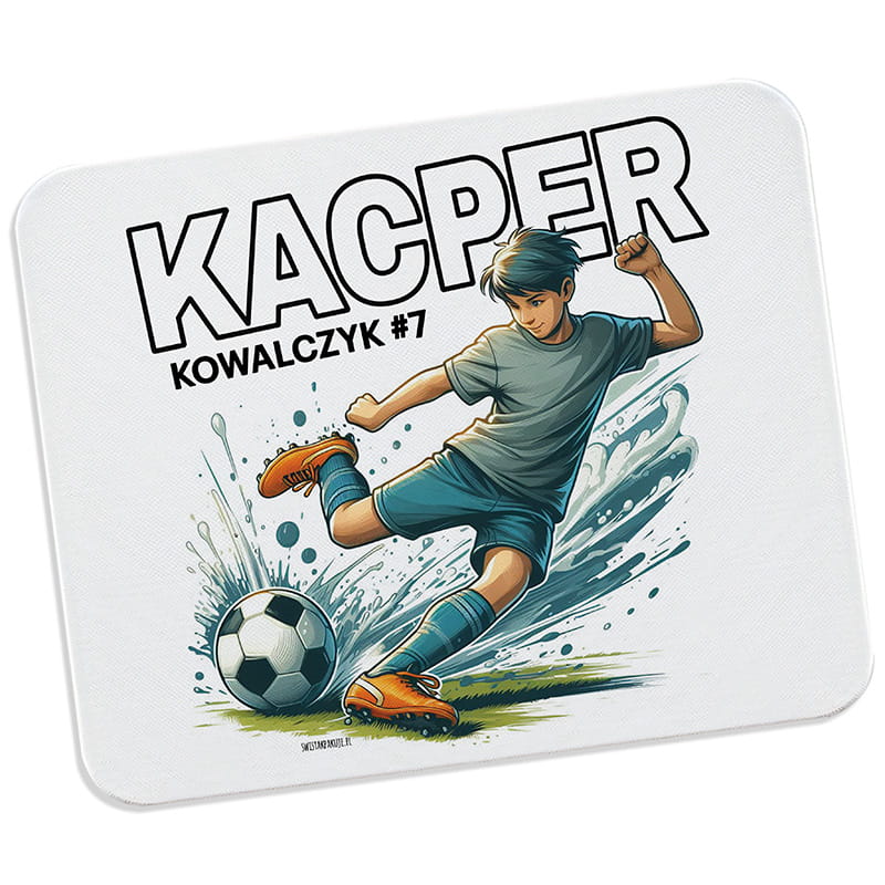 Personalizowana podkładka pod myszkę z imieniem i motywem piłki nożnej to idealny prezent dla młodego fana futbolu. Łączy funkcjonalność z pasją i wyjątkowym stylem.