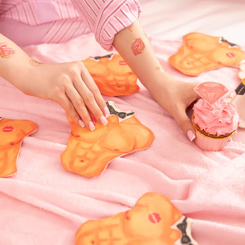 Jeśli planujesz niezapomniany wieczór Panieński, wprowadź odrobinę humoru na stół z wyjątkowymi serwetkami w kształcie umięśnionego, nagiego męskiego torsu! Ich design imituje wyrzeźbiony męski tors ozdobiony muszką i śladem szminki, co doskonale wpisuje się w atmosferę luźnej, kobiecej zabawy. Idealne jako dekoracja stołu, podstawka pod drinka lub po prostu gadżet, który rozbawi i rozluźni atmosferę.