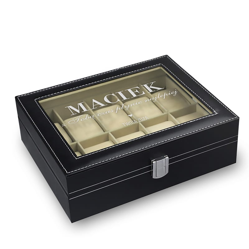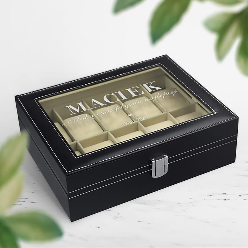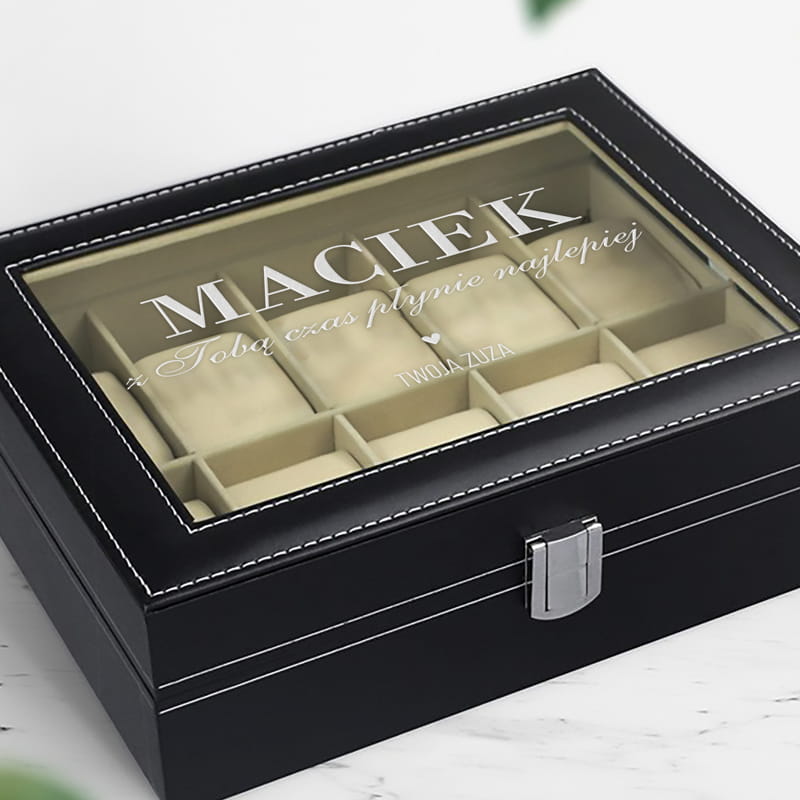 Personalizowany organizer na zegarki to elegancki i praktyczny prezent dla ukochanego na Walentynki.