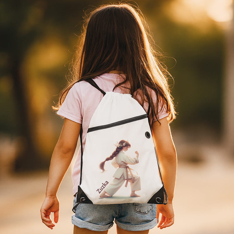 Praktyczne, a jednocześnie stylowe rozwiązanie na treningowe potrzeby twojej córki. Personalizowany worek ze sznurkami plecak łączy funkcjonalność z estetyką i pozwala młodej miłośniczce karate poczuć się naprawdę wyjątkowo. Idealnie sprawdzi się jako prezent na urodziny, początek roku szkolnego lub początku kariery jako mistrzyni karate.