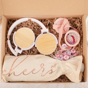 Całość uzupełniają różowe cukierki z motywem serca, które wprowadzają do zestawu lekkość i odrobinę słodyczy. Ważnym elementem jest także butelka bezalkoholowego wina musującego, zapakowana w jasne etui z połyskującym napisem „cheers” w kolorze różowego złota. Kompozycja utrzymana jest w spójnej kolorystyce bieli, różu, różowego złota i jasnych odcieni drewna, dzięki czemu wszystkie elementy doskonale ze sobą współgrają. To uniwersalna propozycja na prezent urodzinowy, imieninowy, walentynkowy czy inny wyjątkowy moment, gdy chcesz sprawić radość bliskiej osobie i podarować jej coś zarówno pięknego, jak i praktycznego.