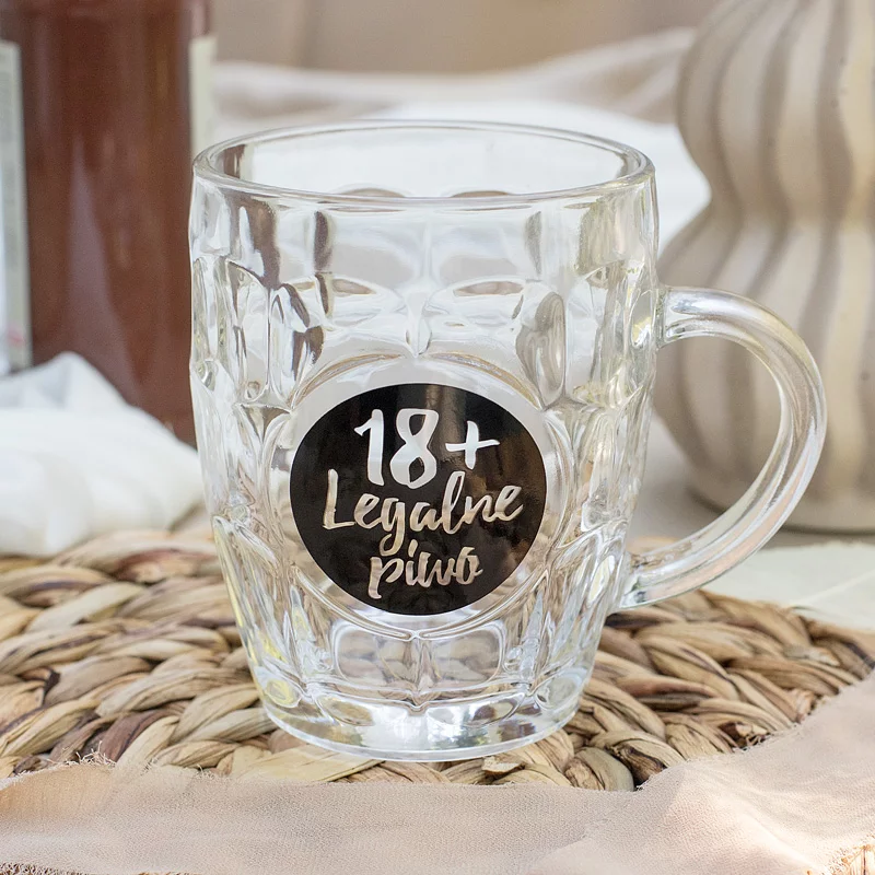 - Szklany kufel z napisem „18 – Legalne Piwo”