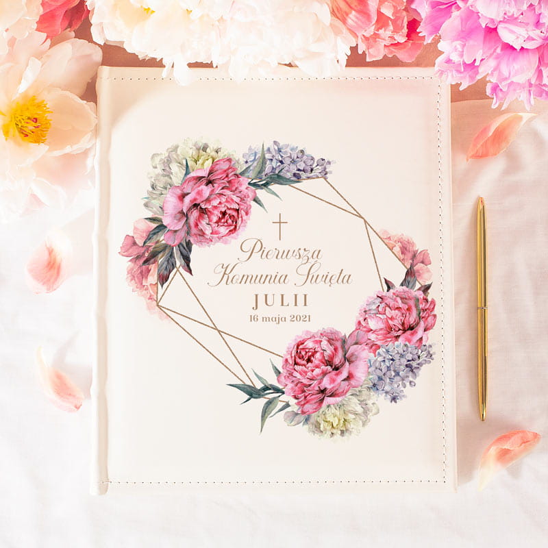 ALBUM na zdjęcia prezent na I Komunię Św. Sweet Peony