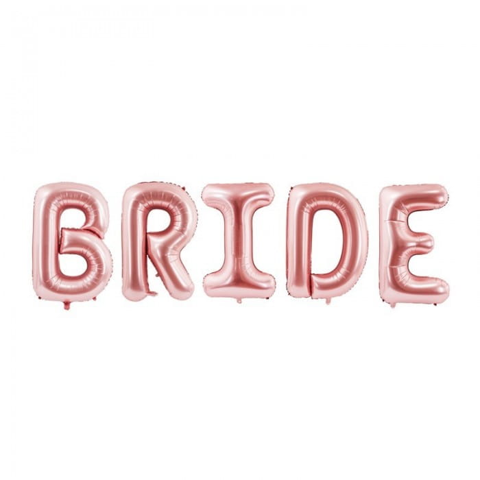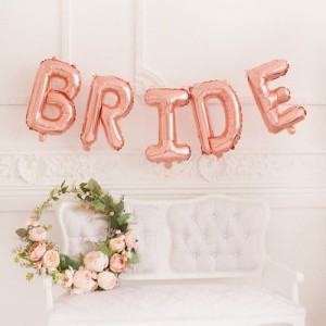- zestaw foliowych liter - balonów, które tworzą wielki napis BRIDE,