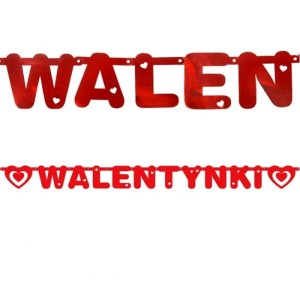 - Baner w formie napisu z pewnością sprawi, że wieczór we dwoje, czy impreza walentynkowa w restauracji będzie udana. Na baner składają się metalizowane litery w czerwonej kolorystyce. Litery tworzą napis Walentynki, dodatkowo baner posiada dwa serca. Dzięki temu, że posiada metalizowane litery, wykonane dekoracyjną czcionką, to ozdoba prezentuje się niezwykle nowocześnie, a także efektownie. Dekoracja jest do samodzielnego złożenia, w prosty sposób można ją powiesić w dowolnym miejscu. Ciekawie będzie prezentować się również umieszczona na stole, jako część aranżacji.