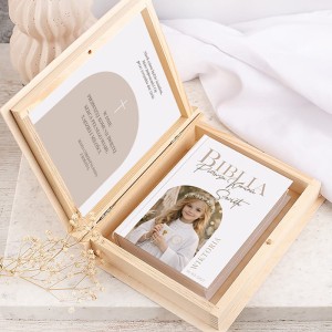 BIBLIA Komunijna ze Zdjęciem na Okładce w Drewnianym Pudełku