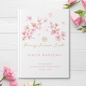BIBLIA prezent na Komunię z imieniem RÓŻOWE MAGNOLIE