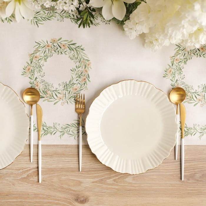 - Flizelinowy bieżnik na stół w białym kolorze z delikatną grafiką przedstawiającą drobne listki. Ten piękny obrus okaże się idealny na wiele okazji i pozwoli Ci stworzyć niezapomnianą aranżację na Twoim stole. Ma wiele zalet, które sprawią, że zakochasz się w nim od pierwszego spojrzenia i zechcesz wykorzystać go więcej niż raz! Jego wysoka jakość wykonania zapewnia trwałość i estetyczny wygląd, zachwycą Twoich gości. Grafika przedstawiająca listki dodaje mu świeżości i naturalnego uroku, wprowadzając do wnętrza przyjemną, wiosenną atmosferę. Ten bieżnik jest nie tylko piękny, ale także bardzo praktyczny. Jego długość wynosząca 5 m pozwala na swobodne dekorowanie długich stołów lub stworzenie efektownych aranżacji na kilku mniejszych stołach. Obrus bowiem można z powodzeniem ciąć na mniejsze części bez uszczerbku na wyglądzie. Ponadto jest bardzo łatwy w czyszczeniu, więc po imprezie można go schować i wykorzystać innym razem