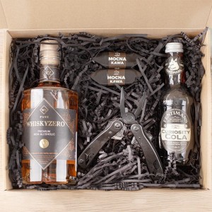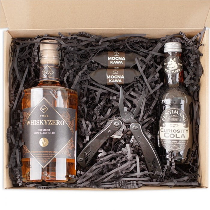 - W skład tego luksusowego zestawu wchodzi Whisky Zero Premium, którą można degustować w wyjątkowy sposób, bez obawy o alkohol, co stanowi doskonałą alternatywę dla tradycyjnej whisky. Multitool w kombinerkach z ukrytymi funkcjami, to praktyczny i wszechstronny gadżet, który przyda się w wielu sytuacjach. Posiada wiele ukrytych narzędzi i może być nieoceniony w codziennym życiu. Krówki rzemieślnicze nadają całości smakowitego akcentu i są wyjątkowo pyszne. Napój typu cola z naturalnych składników gwarantuje oryginalny smak i wysoką jakość. Wszystko jest w eleganckim pudełku.