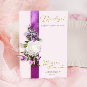 - Opaska jest oryginalnie zawiązana na kartce, która będzie zawierać również personalizowaną treść podziękowania. Taki upominek z pewnością będzie dla każdej obdarowanej miłą niespodzianką. A ty niczym panna młoda z amerykańskiego snu zabłyśniesz kreatywnością i stylowym pomysłem na upominki.