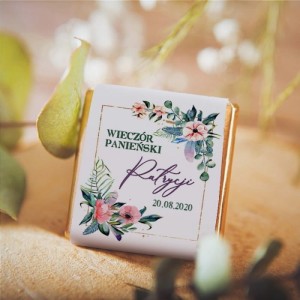 - na etykiecie nadrukujemy imię Panny Młodej i datę wieczoru panieńskiego. Personalizowany upominek zawiera również napis "Wieczór panieński",