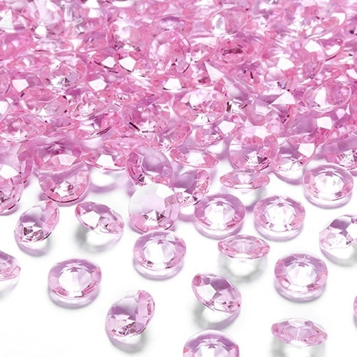 ozdobne diamenciki w kolorze jasnoróżowym, wykonane z błyszczącego akrylu