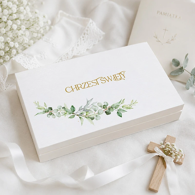 Postaw na elegancki sposób wręczenia prezentu, który wyróżni się już na pierwszy rzut oka. Drewniane pudełko na pieniądze to stylowa forma podarunku na Chrzest Święty.