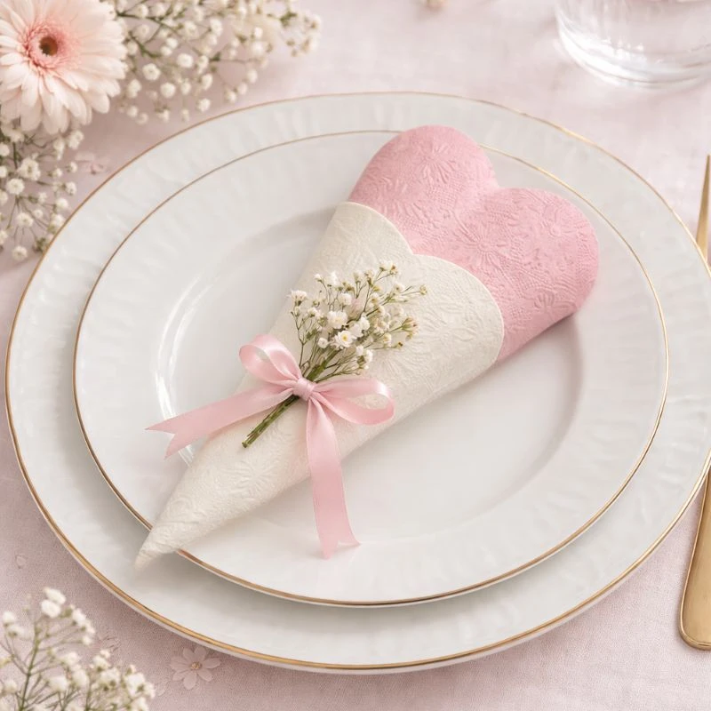Estetycznie nakryty stół to podstawa każdej udanej uroczystości. Białe, tłoczone serwetki pozwalają w prosty sposób stworzyć elegancką aranżację, która podkreśli charakter przyjęcia i doda całości lekkości.