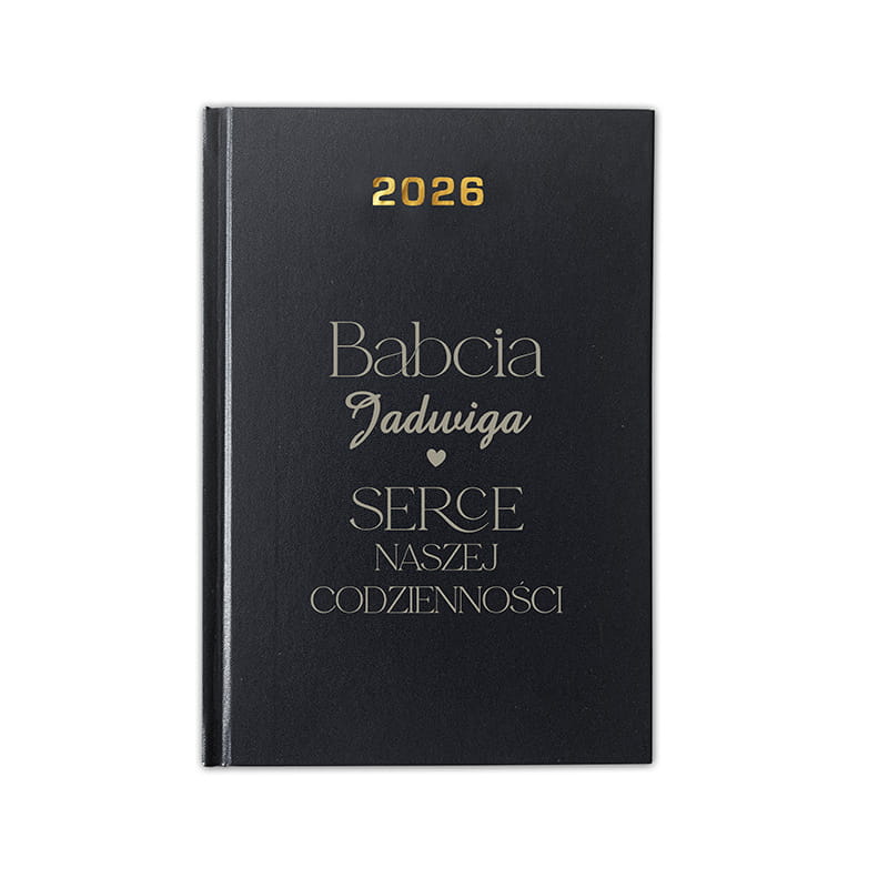 Elegancki kalendarz książkowy z personalizowaną okładką to praktyczny i pełen ciepła prezent na Dzień Babci. Twarda oprawa, delikatny nadruk z imieniem i wzruszającym napisem czynią z niego przedmiot o osobistym charakterze. Dobrze sprawdzi się do zapisywania codziennych spraw, ważnych dat i wspomnień. Idealny upominek dla Babci, która ceni porządek i piękne detale.