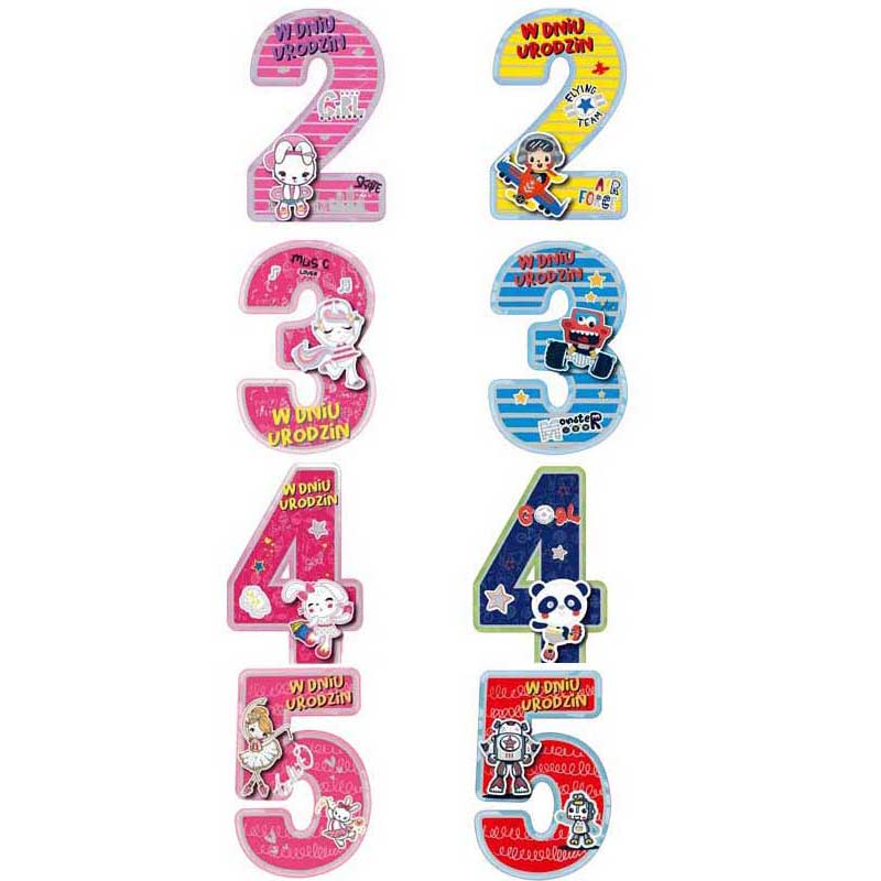 KARTKA Cyferka z Życzeniami na Urodzinki Dziecka 2-5