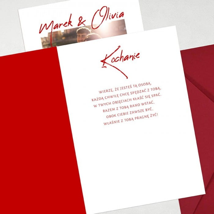 Wnętrze kartki oferuje miejsce na osobisty wpis, co pozwala dodać indywidualny akcent do przesłania. To tam można wpisać własne życzenia, wiersz lub po prostu podzielić się myślami, które uczynią ten prezent wyjątkowym dla ukochanej osoby. Elegancka i stonowana, z subtelnymi elementami graficznymi, ta kartka jest idealnym sposobem na wyrażenie uczuć w przemyślany i niepowtarzalny sposób, będąc jednocześnie świadectwem rosnącej miłości i szczególnych chwil spędzonych razem.