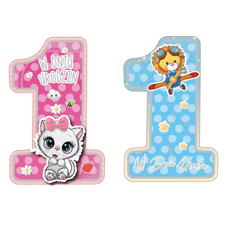 Kartka z życzeniami na roczek wykonana jest w oryginalnym kształcie cyferki 1, co idealnie nawiązuje do pierwszych urodzin dziecka. Dostępna jest w dwóch wariantach kolorystycznych – różowym oraz niebieskim, dzięki czemu łatwo dopasować ją do dziewczynki lub chłopca. Urocze ilustracje, dziecięce motywy i staranne zdobienia sprawiają, że kartka prezentuje się niezwykle atrakcyjnie i radośnie. Wewnątrz znajduje się uniwersalna treść życzeń odpowiednia na pierwsze urodziny, z możliwością własnoręcznego podpisu i dodania daty, co nadaje kartce osobistego charakteru.Kartka z życzeniami na roczek doskonale sprawdzi się jako dodatek do prezentu na pierwsze urodziny dziecka. Może być wręczona przez rodziców, dziadków, chrzestnych lub bliskich, a także wykorzystana jako pamiątka z przyjęcia urodzinowego. To drobny, ale bardzo symboliczny element, który pięknie dopełnia urodzinową niespodziankę i pozostaje miłym wspomnieniem z pierwszego roku życia.