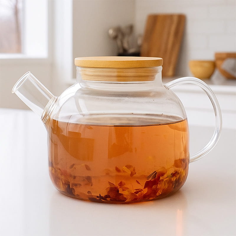 - Dzbanek wykonany z wysokiej jakości szkła borokrzemowego. Pokrywka bambusowa z silikonową uszczelką. Wyjmowana metalowa spirala w wylewce. Produkt posiada wygodny uchwyt.