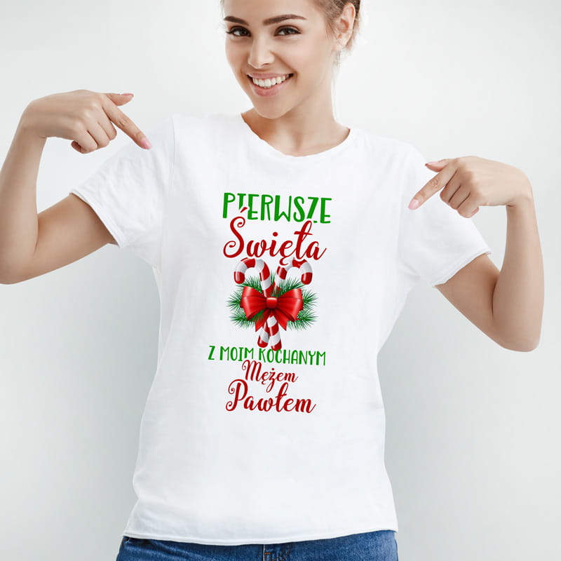 Pierwsze wspólne święta jako małżeństwo to wyjątkowy moment, który zasługuje na szczególną oprawę. Koszulka świąteczna z napisem dla żony to osobisty prezent, który podkreśla ten ważny etap w życiu. Zabawny, a zarazem wzruszający nadruk „Pierwsze Święta z moim kochanym mężem” z możliwością dodania imienia tworzy wyjątkowy klimat. To propozycja dla par, które chcą celebrować wspólne chwile w radosny, niebanalny sposób.
