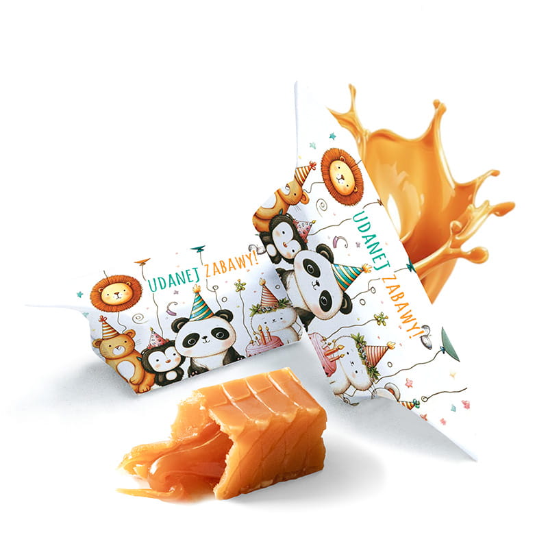 Produkt przeznaczony jest głównie dla rodziców organizujących przyjęcia dla dzieci – zarówno w domu, jak i w przedszkolu, salach zabaw czy na świeżym powietrzu. Krówki można wykorzystać jako prezent dla gości urodzinowych, uzupełnienie paczek z niespodziankami lub słodki poczęstunek dla uczestników. Idealnie sprawdzą się podczas urodzin w stylu zwierzątek, leśnych przygód czy bajkowych motywów. Dedykowane dla dzieci w wieku przedszkolnym i wczesnoszkolnym, ale też doceniane przez rodziców za estetykę i uniwersalność. To gotowy i szybki sposób na słodką oprawę urodzin bez konieczności własnoręcznego pakowania słodyczy.