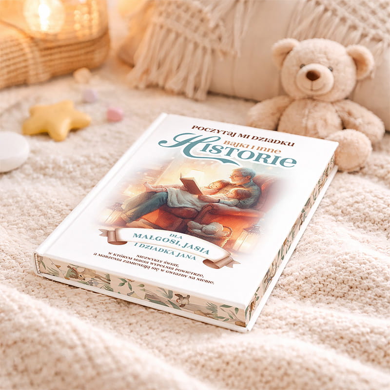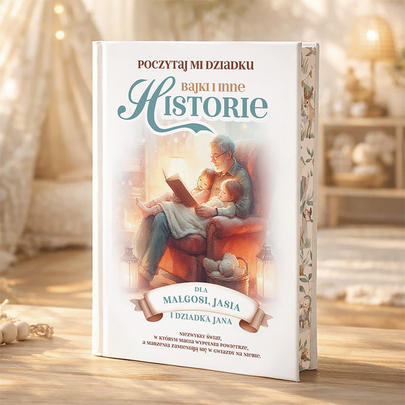Wspólne czytanie to jedna z najpiękniejszych aktywności, która może połączyć pokolenia i stać się codziennym punktem dnia. Książka z bajkami dla dziadka na Dzień Dziadka została stworzona z myślą o ciepłych wieczorach spędzanych z wnukami. Zawiera starannie wybrane opowiadania — zarówno klasyczne, jak i współczesne — opatrzone pięknymi ilustracjami. Wzruszające historie i bajkowe światy zachęcają dzieci do słuchania, rozwijają wyobraźnię i pogłębiają więź z dziadkiem. Dodatkowo, personalizowana okładka z imionami wnuków i imieniem dziadka sprawia, że to oryginalny prezent dla dziadka z okazji jego święta, który zostanie z nim na długie lata.